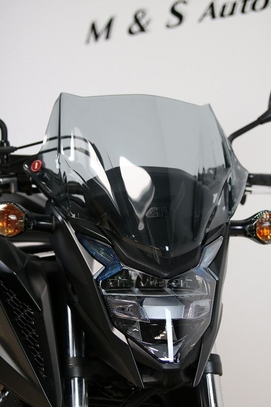 Windschutz fuer unser Einsteiger Naked Bike, die CB 500F Bj.16-17. GIVI bietet eine Variante in leicht getoent, die Befestigung einfach und dezent geloest. 280mm hoch - 365mm breit, mit ABE.