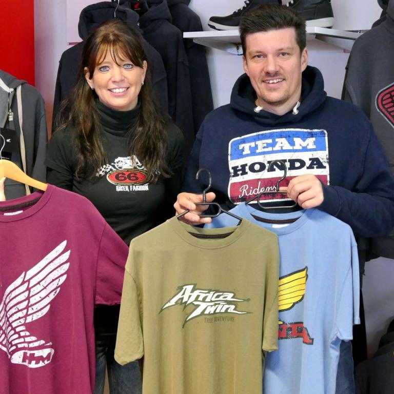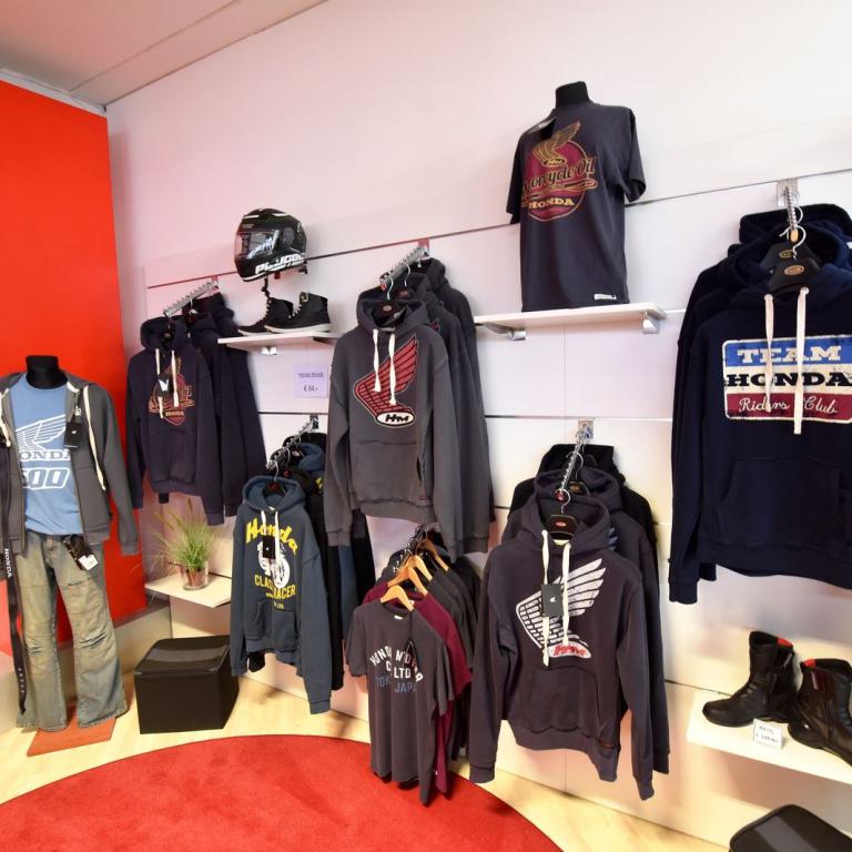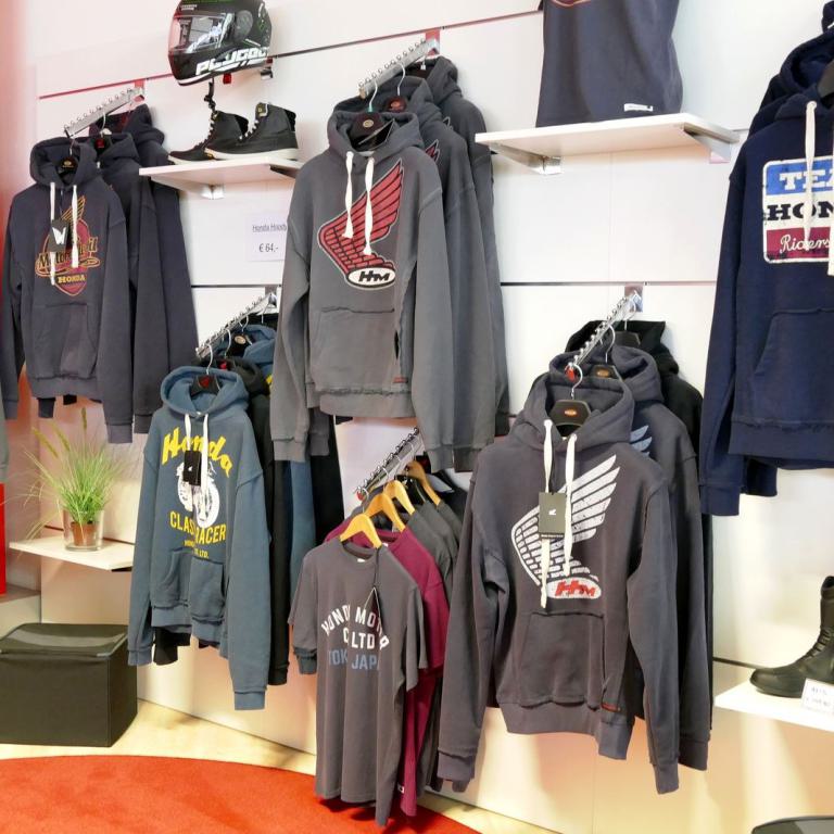 Im Programm bleibt die Honda Streetwear, T-Shirts und Hoody`s, sowie eine kleine Auswahl an Nierengurten und Handschuhen.